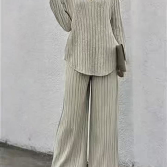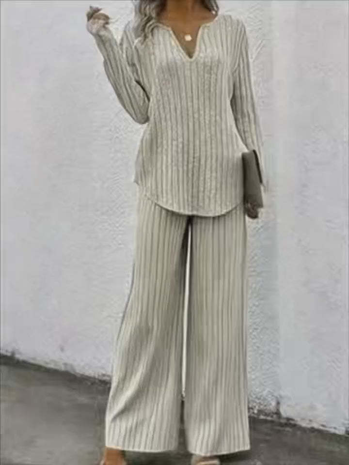 Solid Color Front Slit V-Neck Long Sleeve and Back Contrast Lace Trim Elastic Waist Pants Set, Autumn/Winter Women's Wear, Winter Clothes For Women, Winter Co Ord Set Women, Winter Clothes Women, Winter Sets For Women, Winter Outfits For Women, Women Winter Co Ord Set, Winter Outfit For Women, Winter Trousers Women, Winter Two Piece Outfits For Women, Two Piece Set Women Outfits Winter, Womens Winter Clothes, Women Winter Clothes, Winter Dresses For Women, Winter Co Ord Set